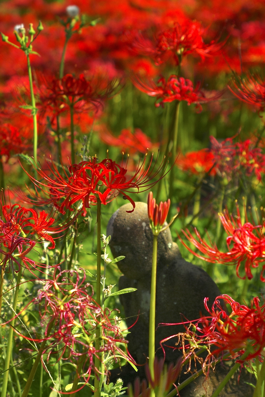 #お地蔵様#stone object #ヒガンバナ#equinoctial flowers #日本の風景#japaneselandscape #癒し#healing#静寂#silence #静寂#silence