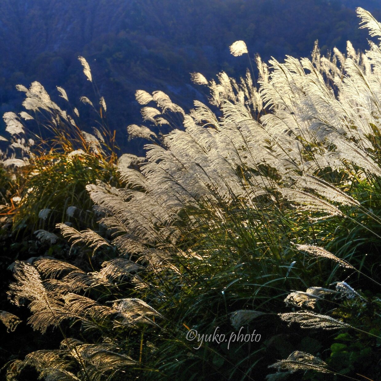 夕日の光を浴びるススキ Pampas bathed in the light of the sunset