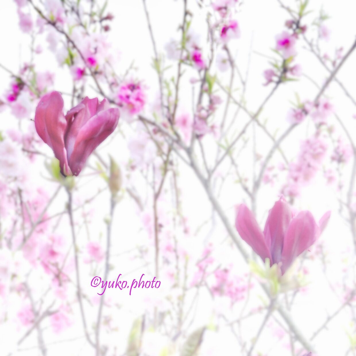 Magnolia blossoms peeking through the cherry blossoms-an elegant and vibrant flower that gently signals the arrival of spring