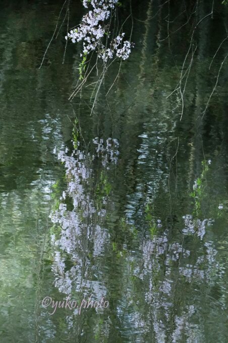 桜の花が 水に映り込んでいる