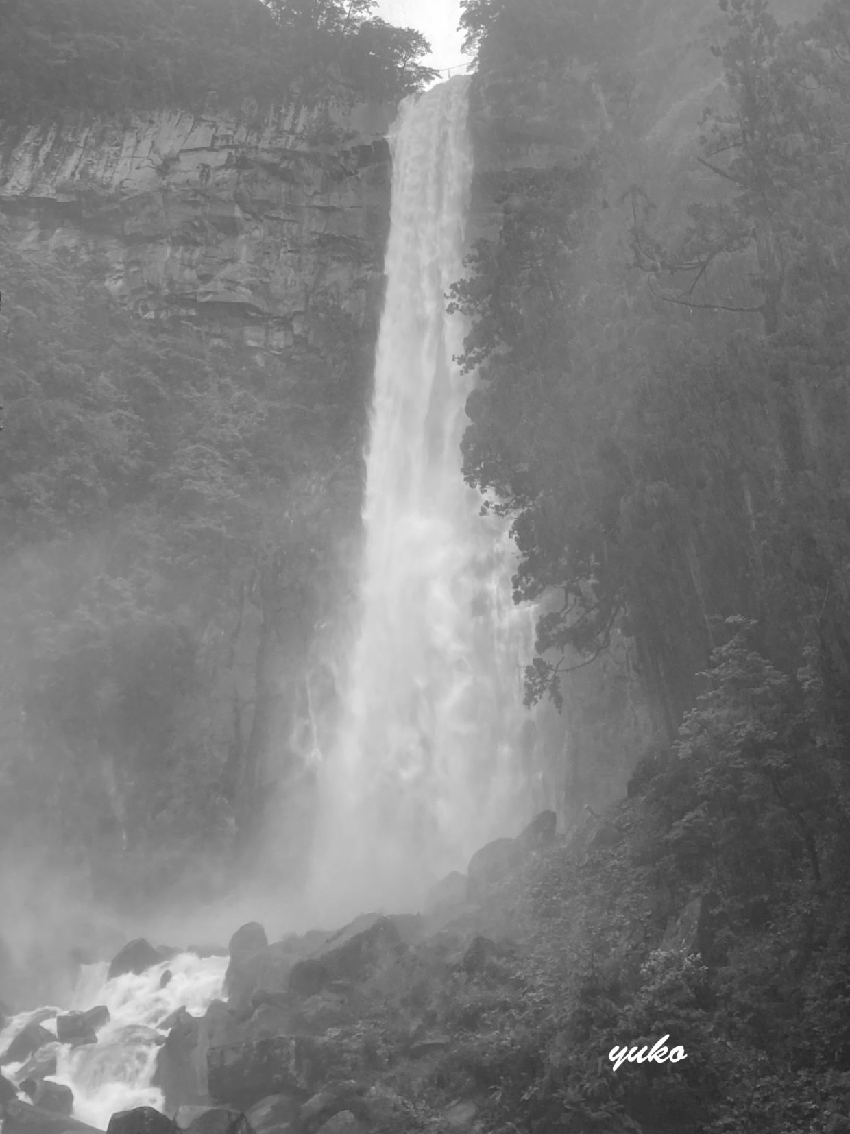 滝の上には しめ縄がかかっている。