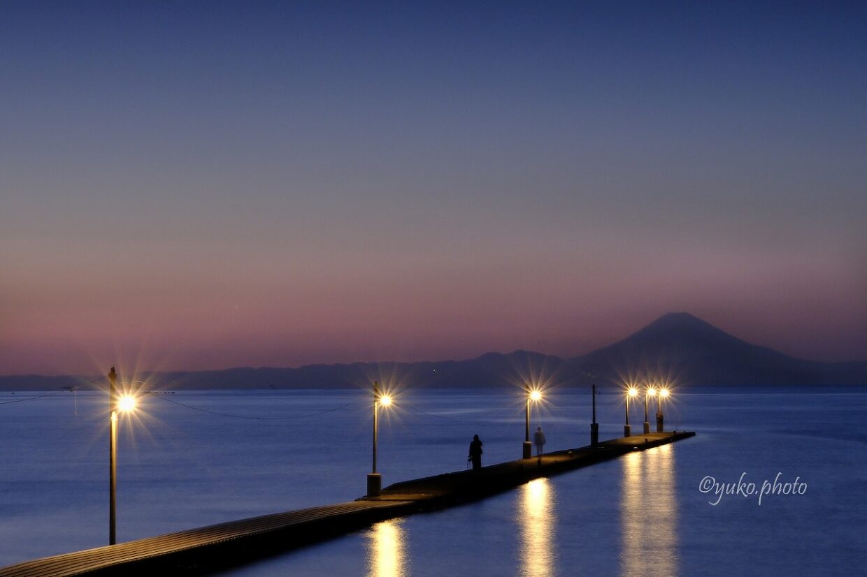 電灯が灯るとともに 富士山が暗闇に消えていく